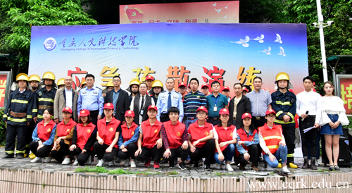 5月10日下午,重庆人文科技学校于百川广场举行了“多一份防范,少一份风险——2018应急疏散演练活动”。副校长杨霄、党委副书记舒卫华、合川区公安局治安支队支队长郑开权出席本次活动,合川区草街街道消防队及各二级学院教职工代表和学生代表参加演练。