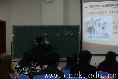 五位参赛老师依次上台进行了20分钟的现场讲课。石大姚老师结合视频回顾历史,突出主题“众志成城赴国难”。阳源浮溢老师的教学主题是“如何看待目前的香港局势”,她结合自身经历立足社会现实,从国民爱国热情、西方制度问题、社会深层结构等方面全面分析了当下香港局势。姜富全老师以“农业的社会主义改造”为主题,梳理了中国近现代农业改造的历史进程,并列举典型的社会主义改造人物,为大家深入浅出地分析农业发展的社会主义道路的现状和前景。比赛中,参赛教师思路清晰,讲解透彻,语言流畅,能灵活运用智慧课堂等现代教学工具进行思政课课堂教学。