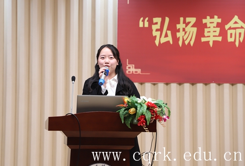 比赛中,各参赛选手就自己心中最伟大的革命事件、红色精神做了自己的诠释。机关党总支参赛选手周渝希结合自己父亲的亲身经历动情述说了一名共产党员的初心和使命,希望自己可以像父亲一样兢兢业业工作,为国家和党的建设贡献出自己的绵薄之力。机电与信息工程学院的参赛选手王静带领大家重温红岩故事,鼓励大家学习红岩精神,在缅怀中提高党性修养,在传承中砥砺责任担当。学前教育学院参赛选手游欢带着满腔的热血讲述五四精神,号召大家做新时代的新青年,用青春作桨,以梦想为帆,在奋斗中释放青春激情,用青春书写无愧于历史和时代的新篇章。