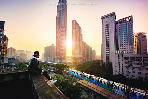 由于经常需要大量的重庆城市风光照片,他就不定期进行重庆城区的踩点取景工作,这也使他成为了一名爬楼党。手机记录下的一天步行2万步、爬个100层楼都是家常便饭,但每当能照出一幅幅动人心魄的城市风光照,此前走过再多的路都觉得非常值得,他更是在一次由中国电信主办的“光影照重庆 岁月谱新篇”摄影大赛中,荣获一等奖。