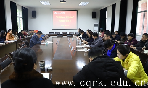 李林齐围绕习近平总书记在“不忘初心、牢记使命”主题教育总结大会的讲话精神,分析了学校主题教育中存在的差距,就深入学习贯彻落实习近平总书记重要讲话精神,巩固深化主题教育成果,做好主题教育后续工作提出了四个方面的要求。一是要着力提高政治站位。把深学笃用习近平新时代中国特色社会主义思想作为首要的政治任务,突出全面落实习近平总书记视察重庆的重要讲话精神和推动成渝地区双城经济圈建设这条主线,坚持不懈用党的创新理论武装头脑,教育指导师生工作学习;二是要建立完善制度机制。要认真贯彻落实党的十九届四中全会精神,把建立不忘初心、牢记使命的制度机制作为第一任务,建立常态化整改机制,以学校章程为本,理清举办方、党委、行政关系,牢牢把好社会主义办学方向,贯彻党的教育方针,落实立德树人根本任务;三是要切实推动整改落实,要系统梳理、对账盘点,要跟踪问效、防止反弹,持续抓好主题教育期间制定的整改方案的整改落实;四是要巩固深化主题教育成果,在学校主题教育认真总结的基础上,将主题教育成果转化为学校改革发展稳定的强大动力,转化到落实立德树人根本任务和为党和国家育才的实际行动,积极谋划好2020年工作,围绕本科教学合格评估这一阶段性中心工作,在人才培养质量上实现新突破,在服务地方经济社会发展上争创新成就,推动学校内涵式发展。
