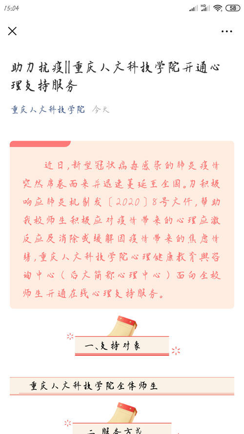 学生工作与就业处心理健康教育与咨询中心向全体师生开通在线心理支持服务。