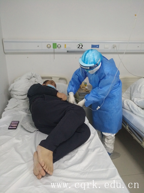 到达前线后,吴豪杰迅速和前辈们一起投入到了紧张的工作中。他克服着因长时间穿着防护服引起的缺氧、呼吸困难;因双层手套没有合适的号码,为避免污染用胶圈勒住手腕导致整个腕关节红肿等重重困难,认真细致地为患者进行治疗和服务。他用自己年轻的肩膀,挑起了一名“90后”急诊科护士的责任,也挑起了一名年轻党员应有的担当。他的事迹也受到了新华社、重庆日报等多家媒体的报道。