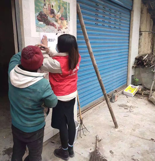 这位同学来自重庆市奉节县青莲镇茅田村,寒假返乡后,新型冠状病毒肆虐,她主动向村委会提出去当志愿者,从2月5日开始,早上8:00到下午5:30,给当地村民们宣讲有关冠状肺炎的相关知识,协助村主任工作,和村上工作人员一起挨家挨户摸清排查情况。