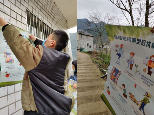 上图是米乐官网工商学院2017级经济学2班周春生同学在粘贴新型冠状肺炎病毒宣传海报的照片。