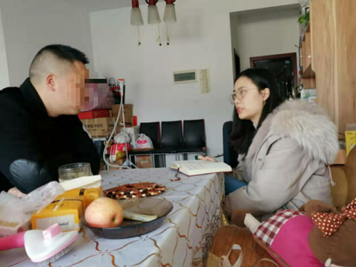 右一张维叶,在疫情初期去往居民家中排查、宣传