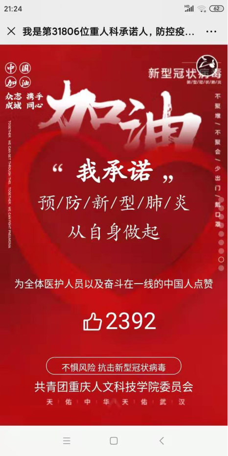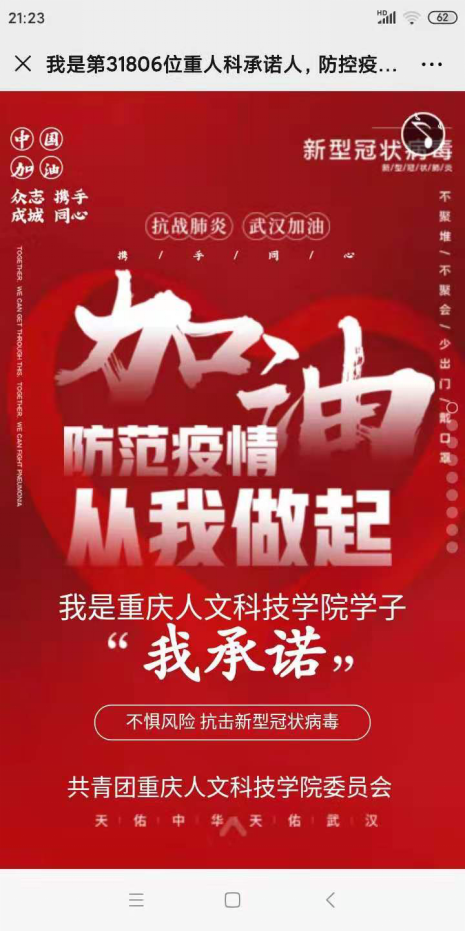为了鼓励师生坚定抗击疫情的决心,同时保护好自己和身边的亲人朋友,学生工作与就业处还通过微信公众号、钉钉工作群等渠道,陆续发布了多份文稿。《致米乐mile官方网站辅导员的一封信》号召全体辅导员用心、用情、用力做到围绕学生、关照学生、服务学生,把学生的安危放在心里,共同努力,凝聚起抗击疫情的磅礴力量;《重人科心理中心疫情防控期间心理援助服务》鼓励全体同学积极自助、求助、助人,心理健康教育与咨询中心会竭诚提供最专业、最真挚的心理服务,大家团结在一起共渡难关;《致2020届毕业生的一封信》告诉同学们平安是学校对他们最大的期盼,顺利就业是我们共同的愿望,我们要坚定信心,同心协力,打赢 “战疫”,就业成功。《我是第X位重人科承诺人,防控疫情,我在行动》号召全体同学携手同心,从自身的防控做起,加强抗击新型冠状病毒感染的肺炎,传递正能量,为武汉加油,为中国加油。