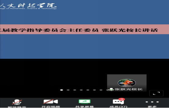 根据重人科〔2019〕181号《米乐mile官方网站教学指导委员会章程》精神,学校正式成立重庆人文科技学院第二届教学指导委员会,并于2020年3月15日下午顺利召开第二届教学指导委员会第一次会议(线上视频会议)。教学指导委员会34位委员、教务处相关工作人员参加会议,本次会议由第二届教学指导委员会副主任委员、副校长孙敏主持。