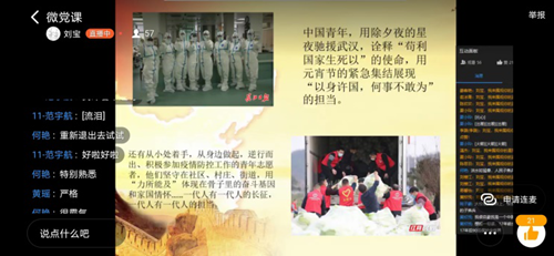 4月16日,艺术学院学生第一党支部全体党员通过钉钉视频直播形式开展本学期第二次“我要讲党课”系列主题党日活动。2017级音乐学专业刘宝同志担当此次党日活动主讲人,他以“弘扬爱国主义思想,打赢疫情防控阻击战”为主题,为大家呈现了一堂别开生面的党课。