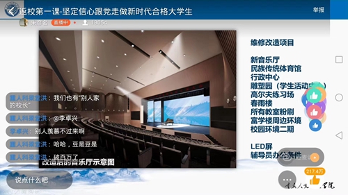 据悉,历时近一小时的直播覆盖了全校除有课程安排学生之外的一万四千余名学生,点赞数超568万,效果显著,尽显人文情怀。