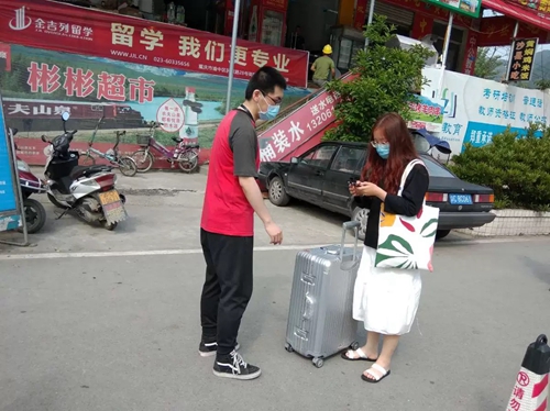 5月17日起,学生陆续错峰返校。同学们登记健康码、进行体温检测后登上回校的“学途巴士”。