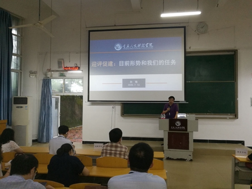 特聘专家陈永跃主要以教学如何适应学生需要、教学规范、教学大纲中实践教育的比例、“双师型”教师的意义、课堂教学规范等方面进行了培训指导;党委副书记、副校长杨霄以“坚定信心 众志成城 打赢本科教学工作合格评估总体战”为题,围绕当前评估形势、主要任务、基本要求三个方面作动员报告;副校长孙敏主要从目前工作面临的形式和主要任务两个大方面展开叙述动员。