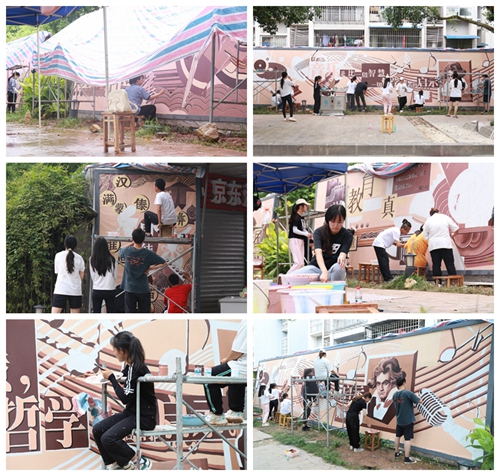 近日,随着最后一笔落笔着色,由学校宣传部牵头组织策划,校学生社团“涂鸦工作室”负责实施,历时2个多月的学校行知文化墙手绘涂鸦翻新工程圆满完成,“行知文化墙”再换新装,以靓丽容颜和深刻内涵,与全校师生朝夕相伴。