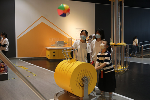 图为科技馆内的志愿者为组员介绍科技馆内的设施和体验项目