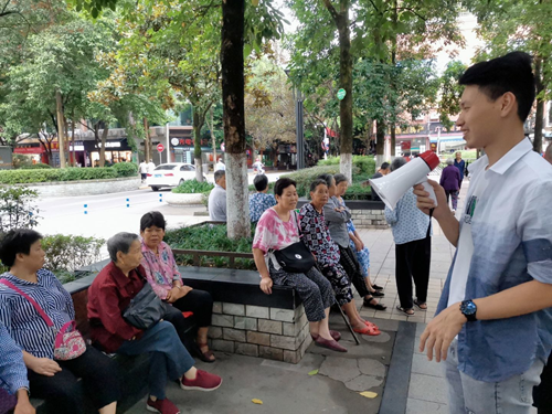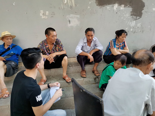 8月27日,团员们来到綦江区北街,以走访慰问的方式,调查空巢老人生活情况。家住綦江区北街的老人梁龙素看着团员们青春的脸庞,很是激动地说:我孙子也跟你们一样,是大学生,很感谢你们关心、关注我们,国家现在的政策是越来越好了,我们衣食无忧,感谢党、感谢政府。