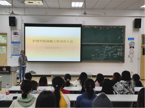 校领导、各职能部门对本次迎新工作给予了高度重视和大力支持,护理学院对迎新工作进行了充分准备,整个迎新工作井然有序。10月9日,护理学院召开迎新工作动员大会,书记助理王娜为全体工作人员讲解本次迎新流程及各项工作安排,具体工作清晰明了,计划安排到点到人,当天下午就完成了所有物资准备、场地布置等工作。
