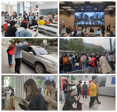 10月10日清晨,志着白衣的新生们,拿着通知书走进了期待许久的大学校园。从大校门至海丰楼,米乐官网在沿途共开设了5处志愿者服务点及1个行李寄放处,各点专任教师、辅导员和志愿者,从早晨7点起就坚守岗位,护理学院院长胡筠惠、书记王小娟深入现场指导迎新工作开展,确保了迎新工作的高质量完成。