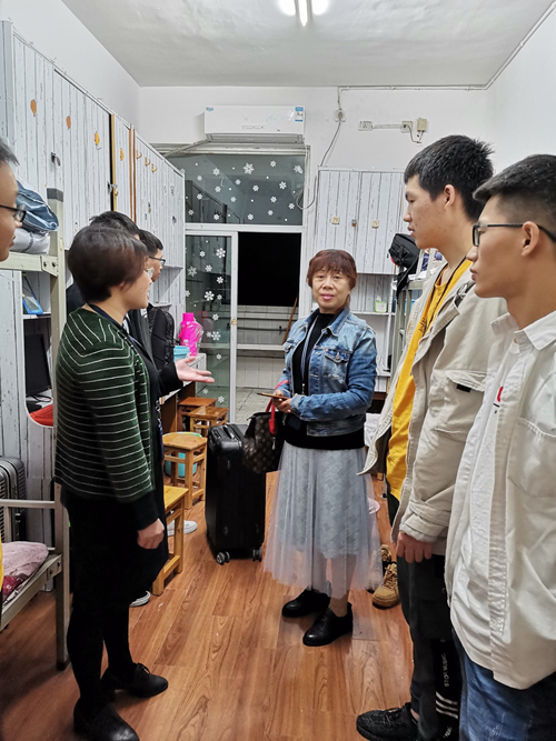 晚上八点,护理学院领导及新生辅导员还来到新生寝室,看望新生并与部分学生进行深入交流,让同学们深切体会到了来自重人科的真诚关爱。