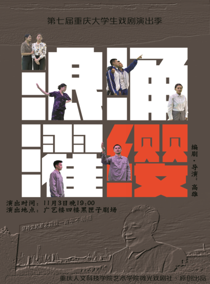 11月3日,学校第七届重庆大学生戏剧演出季参演剧目《浪涌濯缨》校内公演在广艺楼黑匣子剧场开演。