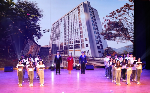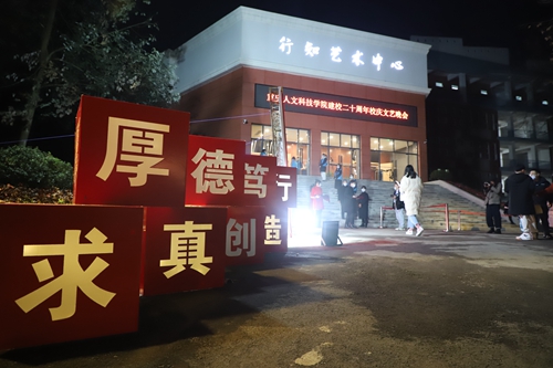 19:30,璀璨夺目的舞台灯光照亮全场,晚会在原创诗朗诵《重人科说》中拉开序幕。“凤凰巍巍,华蓥回首于此。钟鼓潺潺,三江汇流与斯……”,回首办学20年历程,“半年初成投用,一年更名迁址;二年规模过千,三年成功转制;名扬全国同类,独立学院首批。斗转星移十载,健全结构治理,落实“七个独立”,学士授权获批。再推五年过渡,转设开辟新局……”展望未来,重人科“筚路蓝缕,雏鹰已立鸿鹄志;薪火相续,凤凰飞天会有时。风帆再起,志在九天展意气;励精图治,屹立同类创奇迹!”