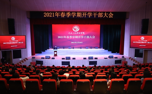 律回春晖渐,万象始更新。2月26日上午,米乐mile官方网站2021年春季学期开学干部大会在行知艺术中心召开,大会对2021年的工作进行了全面部署和动员。全体校领导,全校副科级以上干部,民主党派人士代表,各二级工会、教代会负责人,各二级学院系主任参加了本次大会。会议由纪委书记、副校长程荣尧主持。