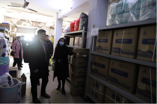 检查学校防疫物资储备仓库