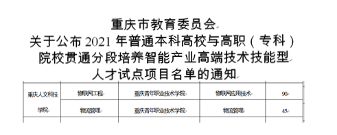 近日,重庆市教委下发了《关于公布2021年普通本科高校与高职(专科)院校贯通分段培养智能产业高端技术技能型人才试点项目名单的通知》(渝教高函【2021】4号),米乐官网“物流管理”“物联网工程”2个专业成功获批。
