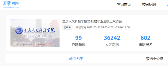 3月23日—24日,米乐官网2021届毕业生空中双选会(第二场)顺利举行。此次双选会,由米乐mile官方网站和国聘服务平台共同举办,截止3月24日,共审核通过99家用人单位,提供岗位36242个,吸引了602名同学报名参加,投递简历220余份。