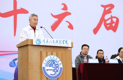 庄严的升旗仪式结束后,校长张跃光致开幕辞,他首先代表学校党政对运动会的举办表示热烈的祝贺。他指出,此次运动会是学校新冠疫情常态化防控以来举行的第一次大型活动,是学校贯彻落实习近平总书记关于教育、体育的重要论述,加强和改进新时代体育工作的重要举措,是检验学校体育工作的重要手段,也是师生们释放自我、激扬活力的有效平台。他表示,学校高度重视体育教育,近年来,学校体育运动条件不断改善,体育教学成绩斐然,课外体育活动有声有色,竞技比赛捷报频传,各项体育活动培养了师生阳光活力、健康积极、竞争合作、坚毅果敢的气质。他希望,全体师生员工以本次运动会为新的起点,走向操场、走进自然、走到阳光下,用实际行动去追求“更高、更快、更强”的奥运精神,用向前奔跑的加速度跑出自我成长的加速度,用尽情呐喊的欢呼声喊出重人科胜利的最强音!