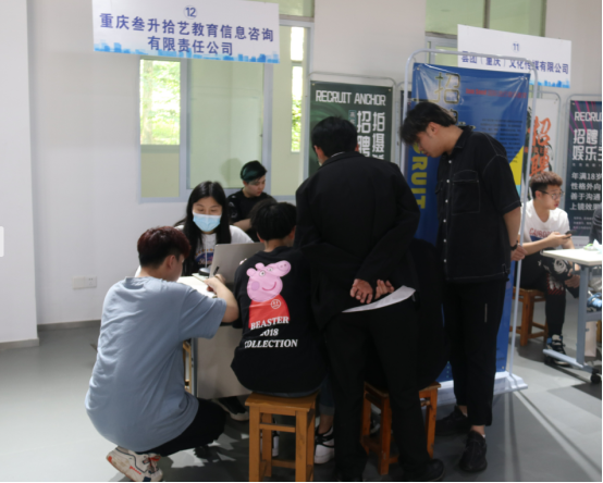 此次招聘会的300多岗位,覆盖艺体类各个专业,涉及编导、篮球、轮滑、游泳、素质拓展、策划、音乐、美工、主播、表演等十几个行业,到场的同学积极与招聘单位沟通交流。