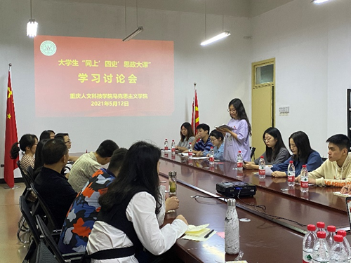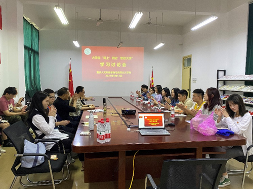为深入贯彻落实习近平总书记关于深化思想政治理论课改革创新和“大思政课”的重要指示批示精神,4月24日、5月9日,米乐官网组织全校学生通过收看网络直播的形式“同上‘四史’思政大课”,并于5月12日中午13:00-14:00,召开“大学生同上‘四史’思政大课学习讨论会”,讨论会在海丰楼党员活动室、文渊楼410智慧教室、广艺楼会议室三个会场同时进行,马克思主义学院思想政治课教师带领涵盖全校13个二级学院的100余名学生代表参与学习讨论。