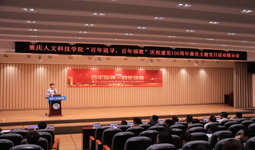 为庆祝中国共产党成立100周年,重温党的光辉历程,歌颂党的伟大成就,推动党史学习教育深入开展,以优异成绩为党的百年华诞献礼。6月8日下午,学校在行知报告厅隆重举办了“百年追寻,百年颂歌”最佳主题党日活动展示会。党委书记张辉,党委副书记、副校长杨霄,党委副书记舒卫华莅临展示会活动现场。党群工作部部长冯沈萍、党政办公室主任刘影、党委教师工作部部长蒋厚兰、党委宣传部副部长匡霞担任评委。各职能部门负责人、二级学院党总支书记、副书记、书记助理,各基层党支部书记、专职组织员和师生代表200余人参加了活动。
