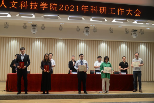 会上,杨霄宣读学校《关于公布科研工作先进单位与先进个人获奖情况的通知》的文件,校领导为获奖单位和个人颁奖。