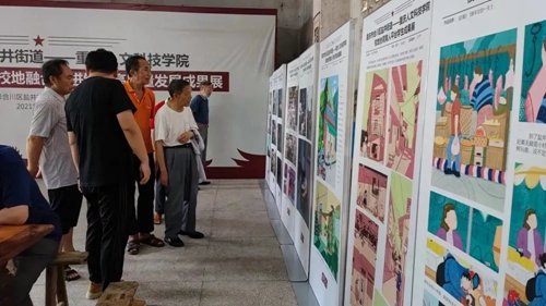 在“农村庭院打造及环境美化亮化院坝课堂”,建筑与设计学院教师唐茜,从空间营造、景观设计、生态友好三个方面,就“如何做好农村庭院美化”与盐井街道茶园村的村民进行了深入交流,同时学生还现场展演制作了两种风格庭院微缩景观供村民观摩;在“校地共建协同育人平台文创作品展览”上,共展出了学生创作的关于盐井风貌、盐井特产设计的插画和包装设计作品30幅,本次展览吸引了大量村民的参观,获得了多方的一致好评。