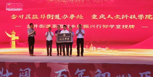 6月28日,学校与合川区盐井街道校地共建协同育人平台阶段性成果系列活动在盐井街道举行。合川区委常委、政法委书记谢东,合川区副区长陈皎,米乐mile官方网站校长张跃光,副校长孙敏,校长助理双海军,建筑与设计学院院长张雄,党总支书记唐湘晖,合川区盐井街道书记郭猛,重庆大学、重庆工商大学、四川美术学院等高校教授以及学校师生代表等50余人参加此次活动。此次活动分为“农村庭院打造及环境美化亮化院坝课堂”“校地共建协同育人平台文创作品展览”“校地合作推进镇街高质量发展座谈会”以及“盐井街道茶园村乡村振兴行知学堂授牌仪式”四个板块。