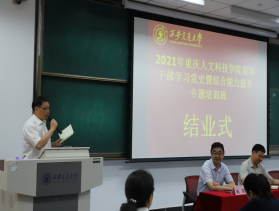 一组学员曹维可,二组学员马厚才,三组学员黄一鸥,四组学员肖宇翔分别代表各组交流发言。大家一致认为,为期6天的培训,一是主题鲜明,既突出党史学习教育,又强调干部综合能力提升;二是内容丰富,培训课程涉及党史学习教育、民办高校内涵发展与质量建设、高校危机管理和舆情应对、师德师风建设、民办高校的依法治校与法律风险防范、从传统文化视角诠释干部忠诚与担当等;三是形式多样,既有专题报告、课堂互动,又有对口交流、实地研学。四是收获颇丰,学到了知识、开阔了视野,增强了意识,鼓足了干劲。