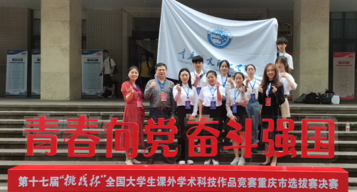 团委副书记帅婷婷和指导教师周渝希带队在重庆大学参加市级决赛