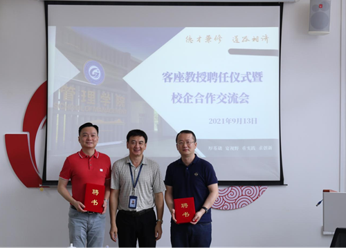 会上,邓旭升代表管理学院热烈欢迎与会领导、嘉宾,详细介绍了学院办学历史、办学宗旨、师资力量、校企合作情况和办学成果,人事处处长蒋厚兰介绍了拟聘客座教授陈晖和王普基本情况,程荣尧其颁发了聘书。