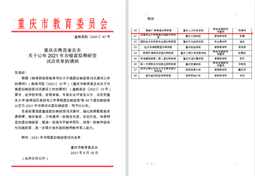 近日,重庆市教育委员会公布了2021年市级虚拟教研室建设试点名单,米乐官网“智能+”美育虚拟教研室被确定为2021年市级试点虚拟教研室。