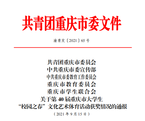 喜报||米乐官网在第40届重庆市大学生“校园之春”文化艺术体育活动中获奖17项