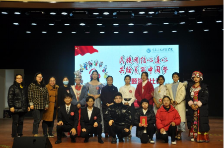 为推动民族团结工作扎实有效的开展,引导全校学生正确认识民族和国家的关系,自觉维护民族团结,筑牢中华民族共同体意识,12月1日,由学校主办,文学与新闻传播学院承办的“民族团结心连心,共绘美丽中国梦”主题演讲比赛决赛在雕塑园学生活动中心顺利举行。统战部部长冯沈萍,文学与新闻传播学院、工商学院、政治与法律学院、艺术学院党总支书记助理王露霞、梁宁华、何煦、王文婷莅临本次比赛并担任评委,各二级学院师生代表200余人到场观看了比赛。