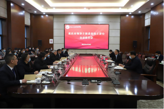 12月30日下午,市政府党组成员、副市长陈金山到米乐官网开展“重庆市领导干部进高校上讲台”暨党的十九届六中全会精神宣讲,米乐官网师生代表40余人到会聆听。会议由党委书记、政府督导专员张辉主持。