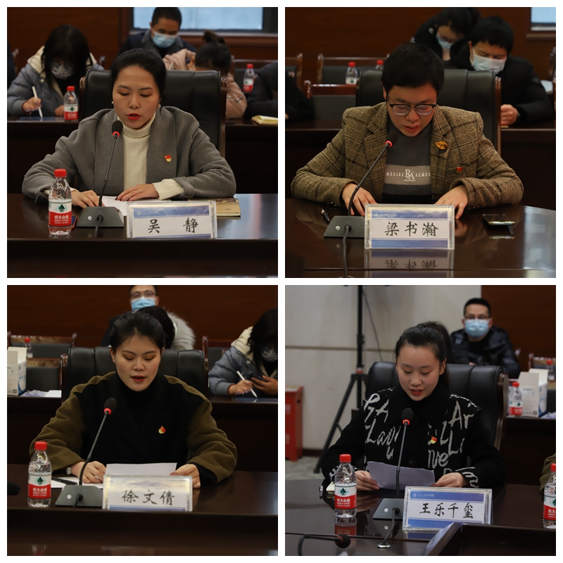 会上,管理学院党总支书记吴静、工商学院学生第三党支部书记徐文倩、文学与新闻学院教师党员梁书瀚、学前教育学院2019级学生党员王乐千玺等分别代表二级党组织、基层党支部及师生党员交流发言,汇报工作情况,分享学习收获,交流感受体会,畅想美好前景,从不同侧面反映了学校党史学习教育有声有色、见行见效。
