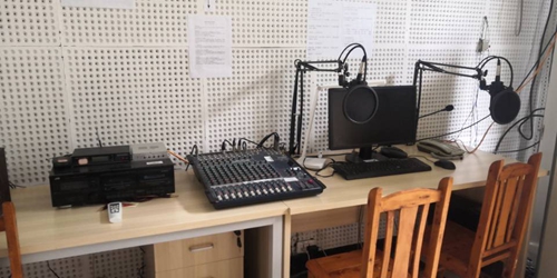 学生播音调试中