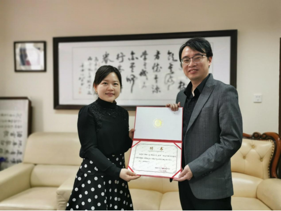 米乐官网艺术学院副院长顾硕获聘为西南大学艺术硕士专业学位研究生指导教师,会上,陈若旭为顾硕颁发了聘书。