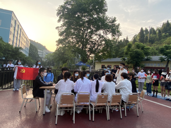 “唱支山歌给党听,我把党来比母亲……”5月15日中午,一片嘹亮的歌声响彻慧园园区。闻声寻去,一群朝气蓬勃的青年学子正在深情齐唱这首献给党的歌。突然,歌声戛然而止,“中共一大从上海法租界望志路106号转移到嘉兴南湖召开……”一名“战士”的旁白,将现场观众带回中国共产党成立之初的那个年代、那段党史,共同感受先辈们在黑暗中探索光明的艰辛和伟大精神。