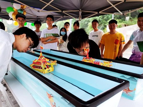 互动环节主要以游园活动形式展开,师生齐心协力完成做龙舟、划龙舟、包粽子,活动中大家跟随工作人员的讲解,回顾了中国共产党百年历程中的伟大而重要的时刻,并用“乘坐龙舟”“翻山越岭”完成了打卡游园活动,老师和同学一起达到心愿终点站,并用笔书写下自己对党对祖国的深深祝福。