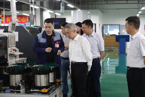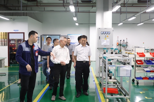 座谈会后,张跃光一行参观了川仪股份重庆四联测控技术有限公司,在国家级技能大师工作室负责人青增泰的解说下,对各生产车间的生产线设备、主要产品和生产流程进行了全面的了解,同时在展厅参观了PDS8智能压力变送器与物位计产品的工况实景。