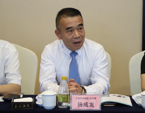 张跃光一行在李应峰带领下先后参观了金谷集团旗下的重庆天赐温泉九龙坡景区、璧山景区两地,并在集团会议室召开了座谈会。集团办公室副主任杜方淦简要介绍了公司发展历程、公司规模版图、企业文化、酒店基本情况。张跃光从学校历史沿革、师资队伍、教学质量建设教科研工作、党建工作、学生工作、校园文化建设、社会影响及发展目标等方面对学校进行了全面介绍。围绕校企合作建议,他希望校企双方能建立长期、紧密的合作关系,共同开展专业建设、项目研究、“双师双能型”教师队伍建设,构建实习实训基地、就业基地等合作内容。