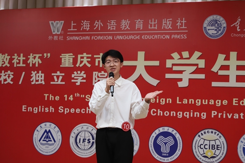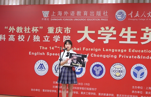 “We Chinese also have made great contributions to maintaining peace……”学校行知报告厅内不时传出流利优美的语音语调,这正是第十四届“外教社杯”重庆是民办本科高校/独立学院大学生英语演讲比赛的现场。6月18-19日,来自全市的8所民办高校44名选手共聚米乐官网,参加英语演讲比赛复赛及决赛。